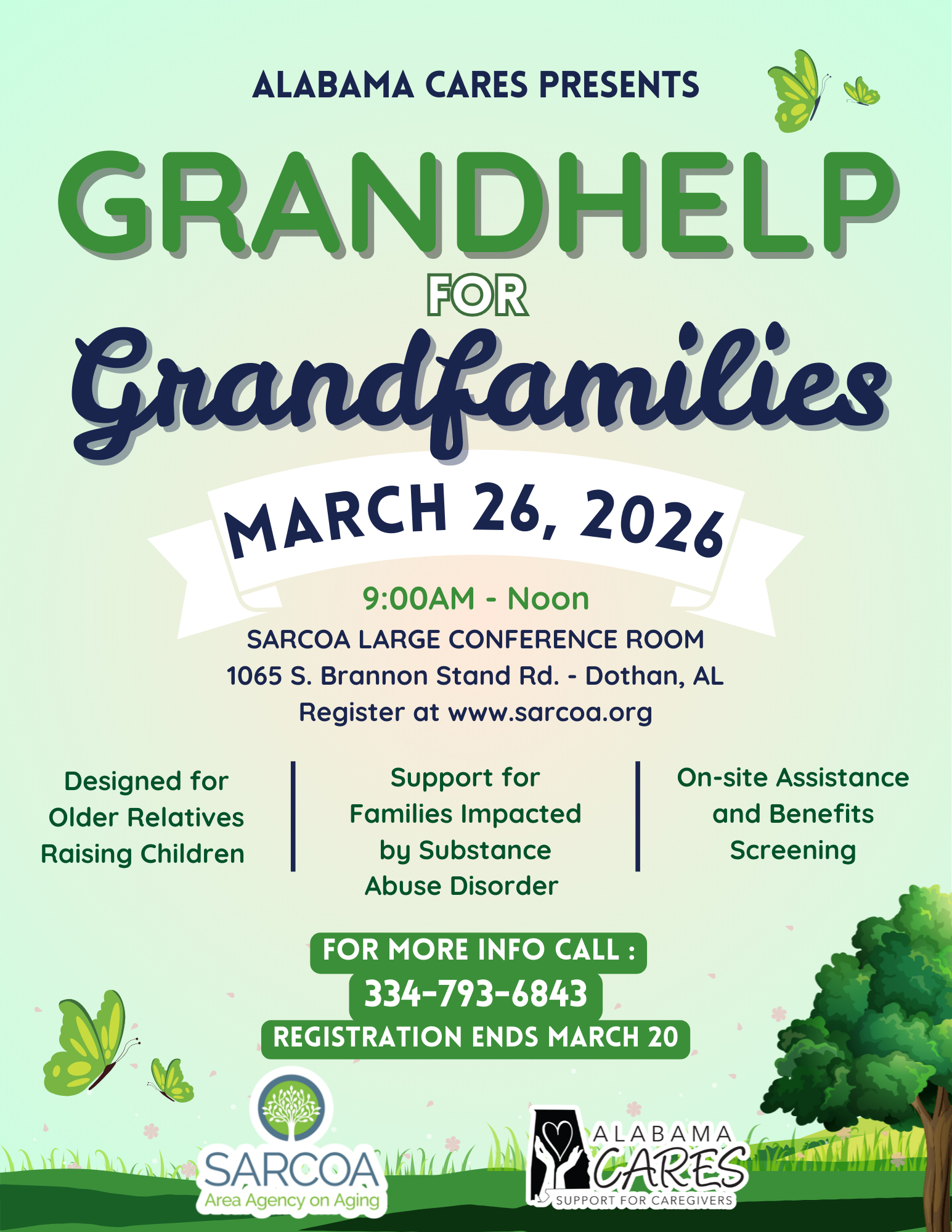 The event will be held march 26, 2026, from 9 a.m. until noon in the SARCOA large conference room at 1065 S. Brannon Stand Road in Dothan. To download a flier with complete details CLICK HERE.